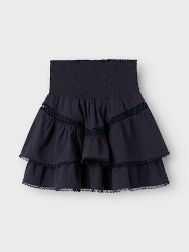 Nydelig skjørt med volanger fra LMTD. Skjørtet har smocking i livet, noe som gjør det veldig behagelig og stretchy. Skjørtet er laget av 100% bomull.