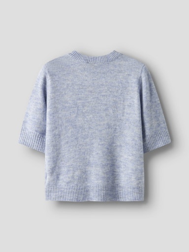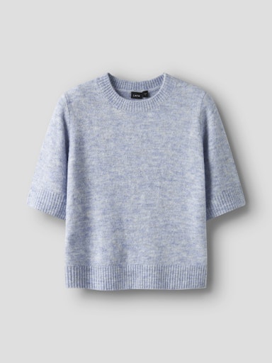 Strikket topp m/kort erm og o-hals. Kort modell, og ribbet manchetter. Regular fit.