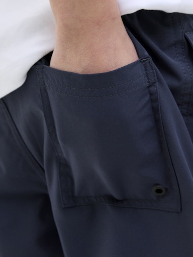 Gjør deg klar for stranden med disse komfortable badeshortsene, laget av en blanding av resirkulerte fibre. Vevde kvaliteter er slitesterke og strekker seg ikke slik som strikkede materialer.