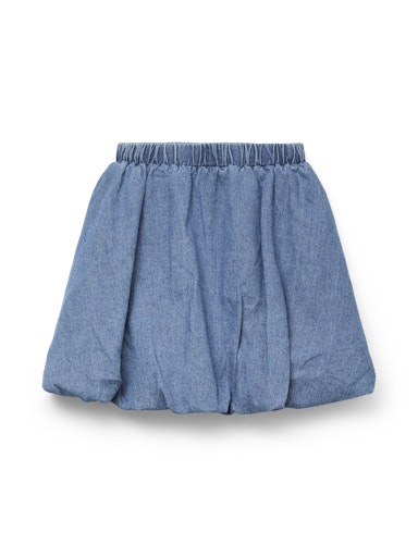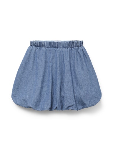 Kort ballongskjørt i denim fra Vero Moda Girl. Strikk i livet, med justerbar midje.